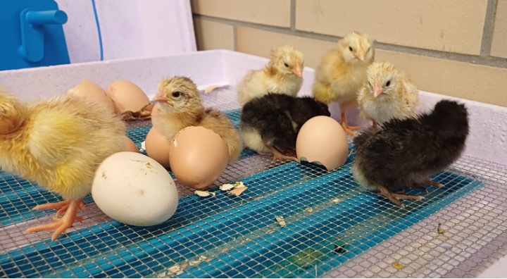 Am 20. April 2023 ging es los: Die Klassen 2a und 2b legten befruchtete Hühnereier vom Kleintierzüchterverein Münchingen in die Brutapparate in ihren Klassenzimmern